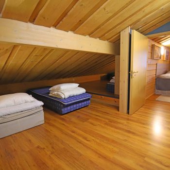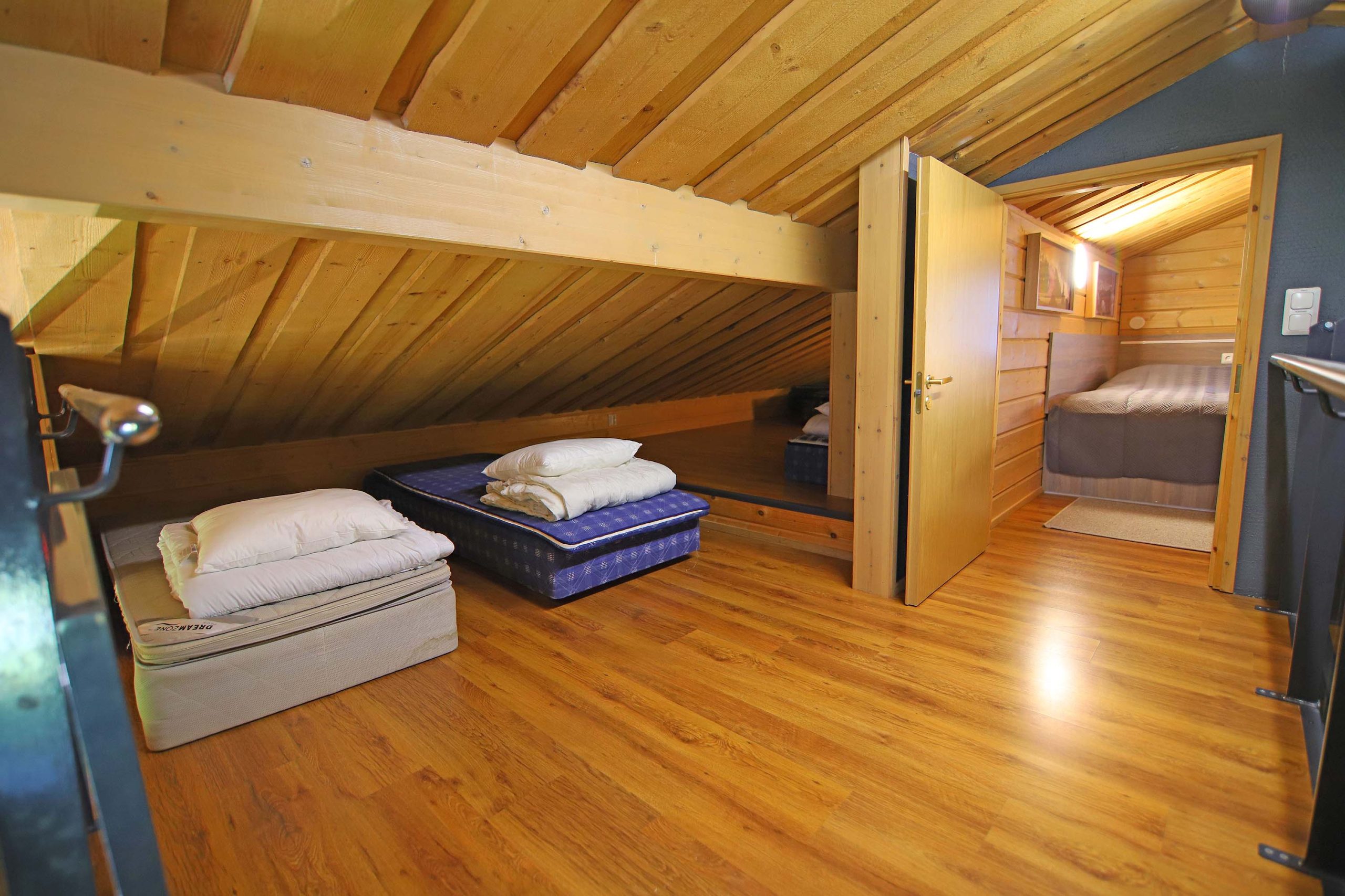 Alakerrassa on yksi makuuhuone jossa 160×200 vuode. Huoneessa lisäksi yöpöydät valolla, peili, pöytä ja vaatekaappeja/vaatesäilytys. Yläkerrassa yksi matala makuuhuone jossa kaksi 80×200 vuodetta ja yksi 160×200 parivuode. Yläkerrassa lisäksi matala parvi ja aulatila jossa neljä 80×200 vuodetta.
